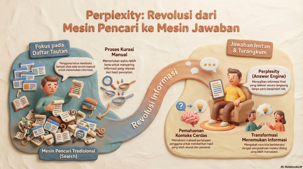 Berbeda dengan mesin pencari tradisional, Perplexity AI hadir sebagai answer engine—sebuah sistem yang tidak hanya menampilkan daftar tautan, tetapi langsung memberikan jawaban yang relevan, ringkas, dan berbasis sumber terpercaya. Kehadiran teknologi ini menandai perubahan besar dalam cara manusia berinteraksi dengan informasi.